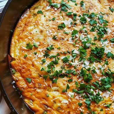 In the skillet add your choice of meat and vegetables saute for 2 to 3 minutes and top with cheese. Pour the egg mix over and cook on medium heat until the eggs begin to set on the edges. Bake for 8 to 10 minutes. Let cool for 5 minutes, slice into wedges and serve!